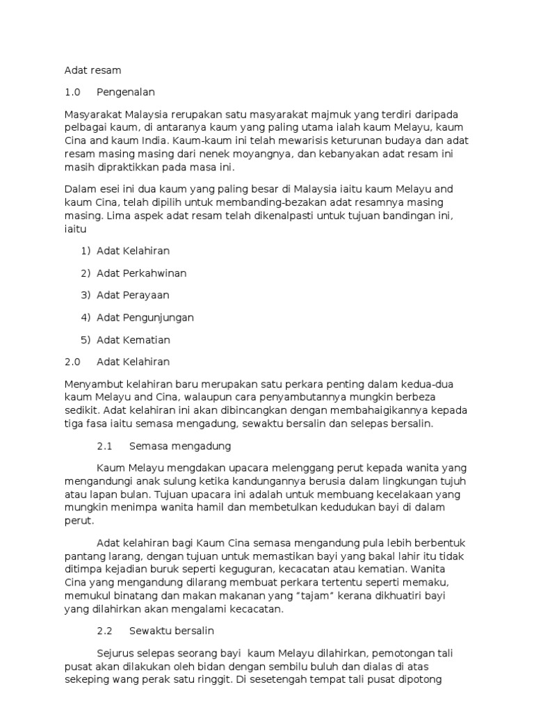 Komposisi Etnik Penduduk Malaysia Adat Resam Dan Pantang Larang