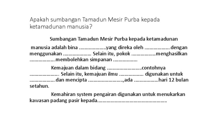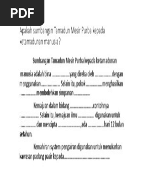 Bahagian A Markah Jawab Semua 1 5 7 Apakah Sumbangan Tamadun Mesir Purba Kepada Ketamadunan Manusia Pdf Document