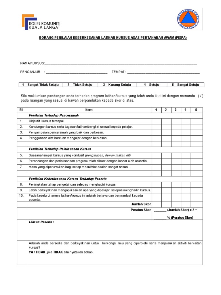Doc Contoh Borang Penilaian Keberkesanan Latihan Dky Jerry Academia Edu
