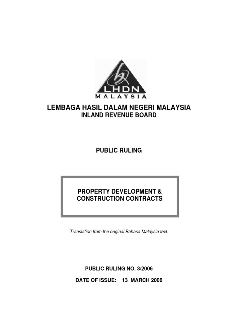 Public Ruling No 3 2006 Property Development Construction Contracts Taxes Income Tax