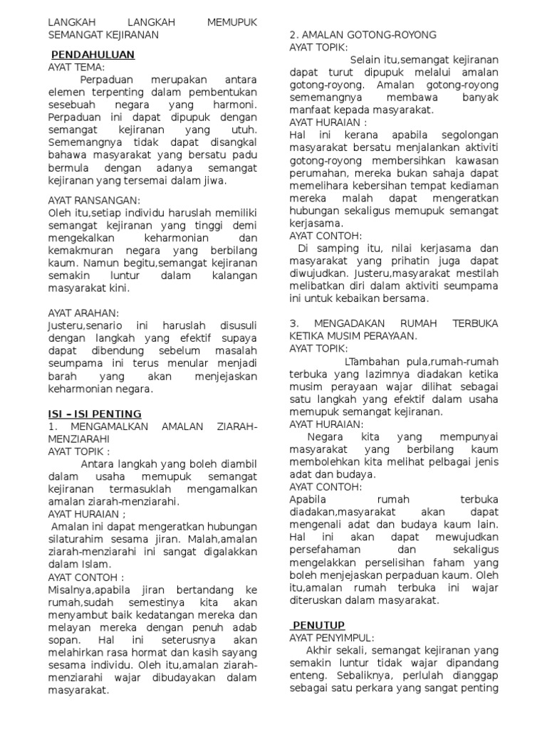 Karangan Langkah Langkah Memupuk Semangat Kejiranan