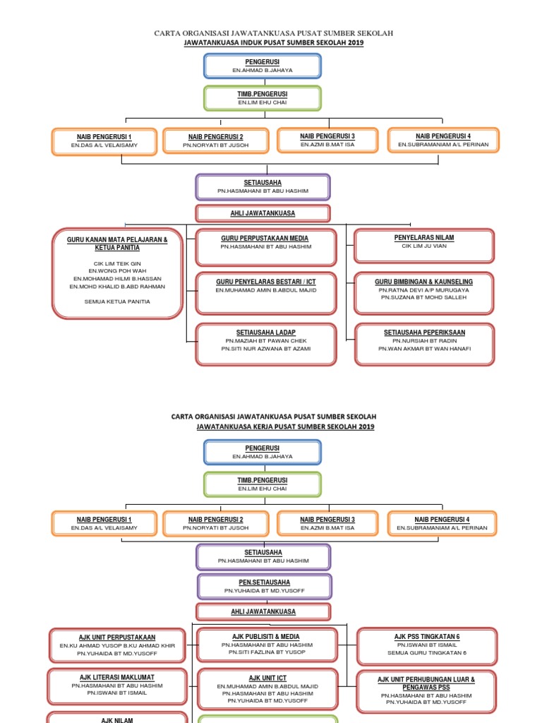 Carta Organisasi Jawatankuasa Pusat Sumber Sekolah 2019