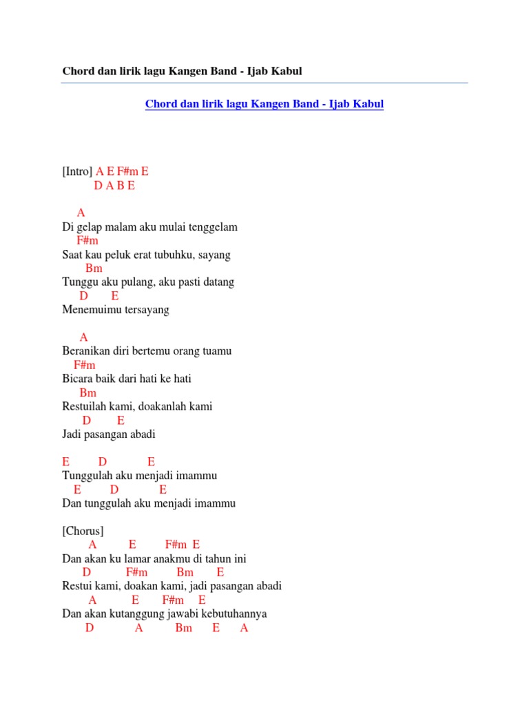 Doc Chord Kunci Gitar Kangen Band Ijab Kabul Muhammad Yamin Academia Edu