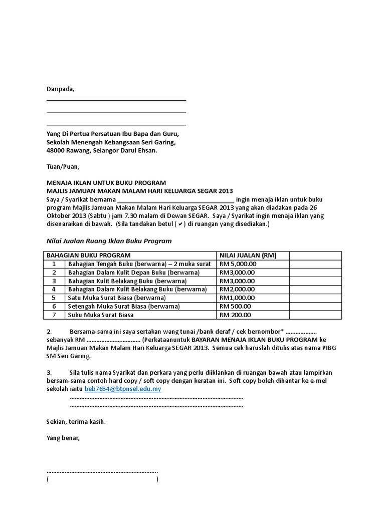 Contoh Surat Rasmi In English