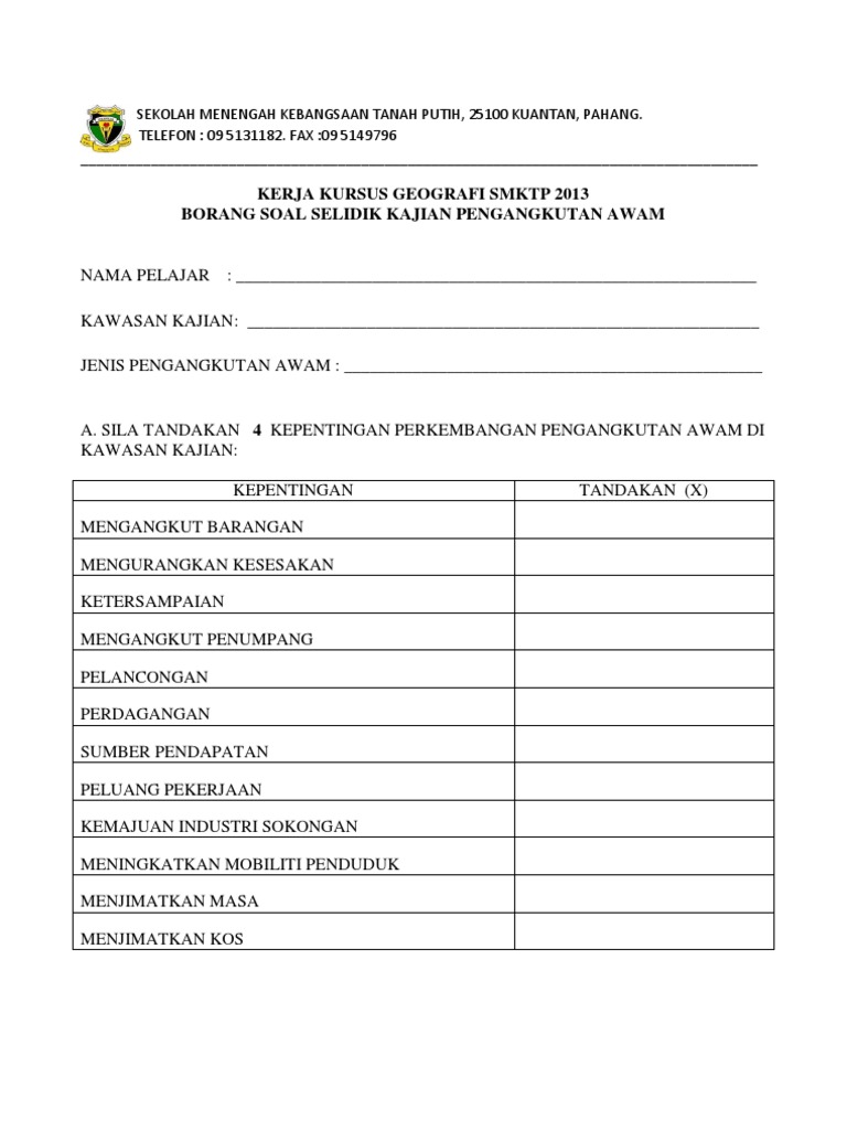 Borang Soal Selidik Pengangkutan Tugasan Geografi Pt3 2016