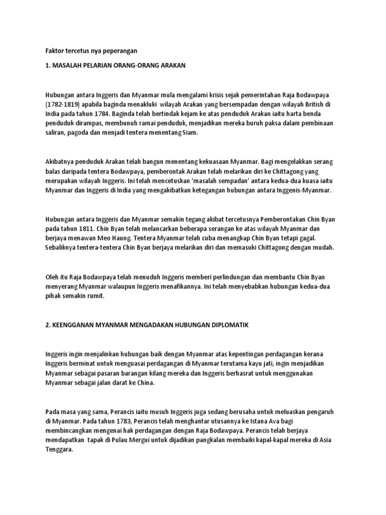 Faktor Tercetus Nya Peperangan 1 Masalah Pelarian Orang Orang Arakan