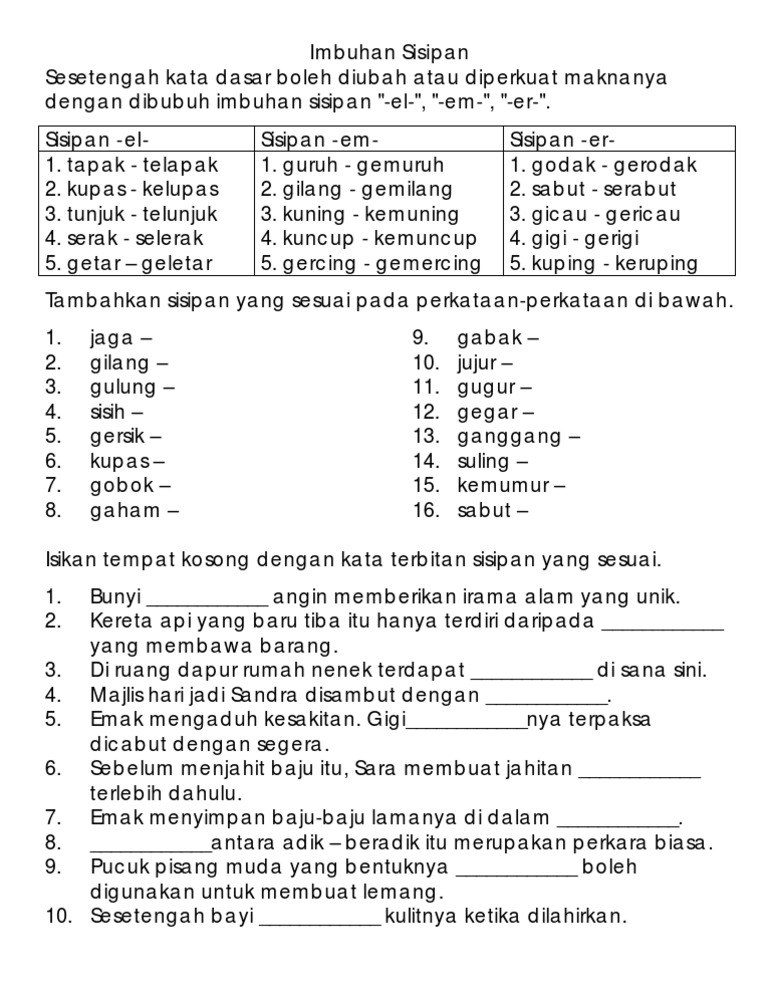 Imbuhan Apitan Kata Kerja Dan Sisipan