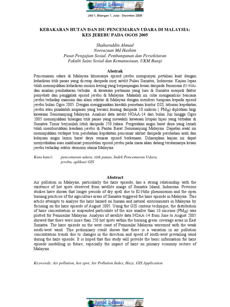 Kebakaran Hutan Dan Isu Pencemaran Udara Di Malaysia Kes Jerebu Pada Ogos 2005 Ukm Journal Article Repository