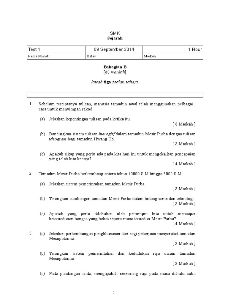 Jawab Tiga Soalan Sahaja Sejarah