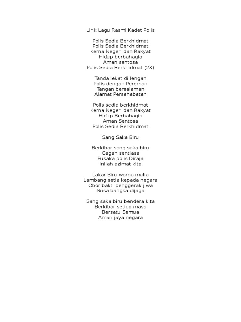 Lirik Polis Sedia Berkhidmat Docx