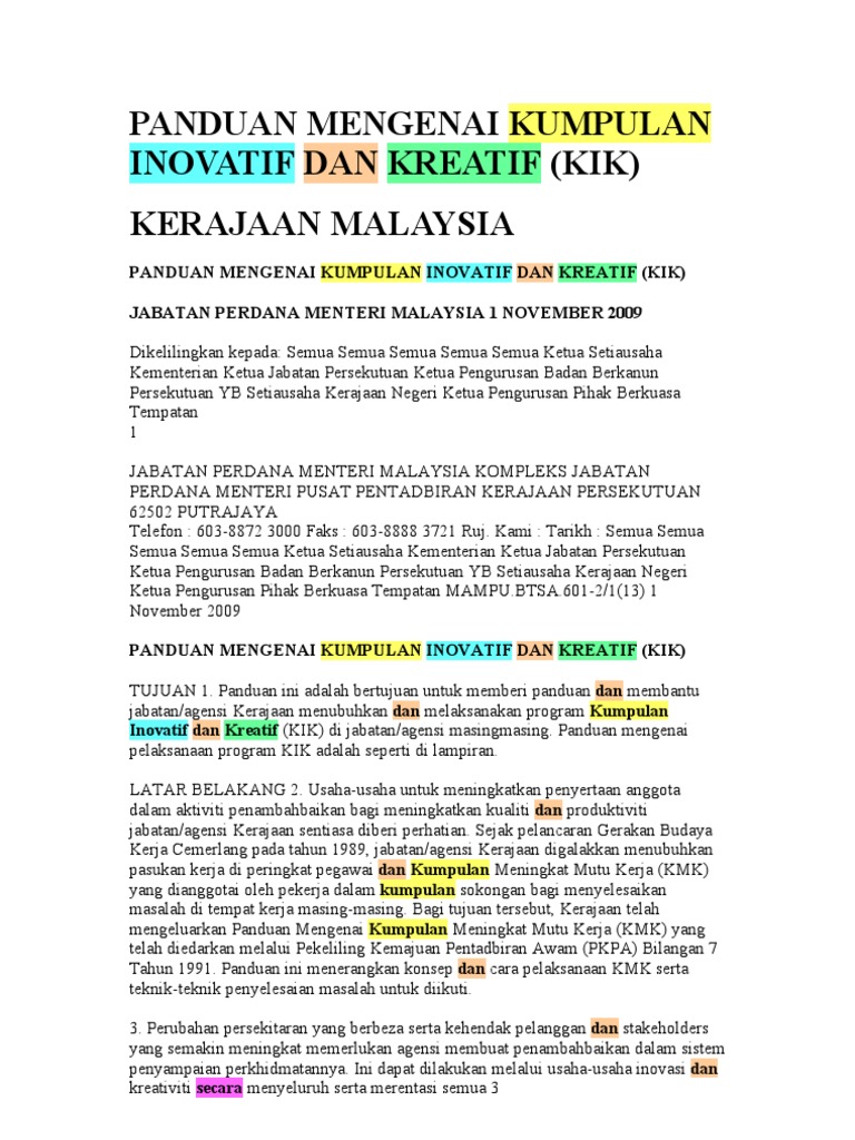 Panduan Mengenai Kumpulan Inovatif Dan Kreatif