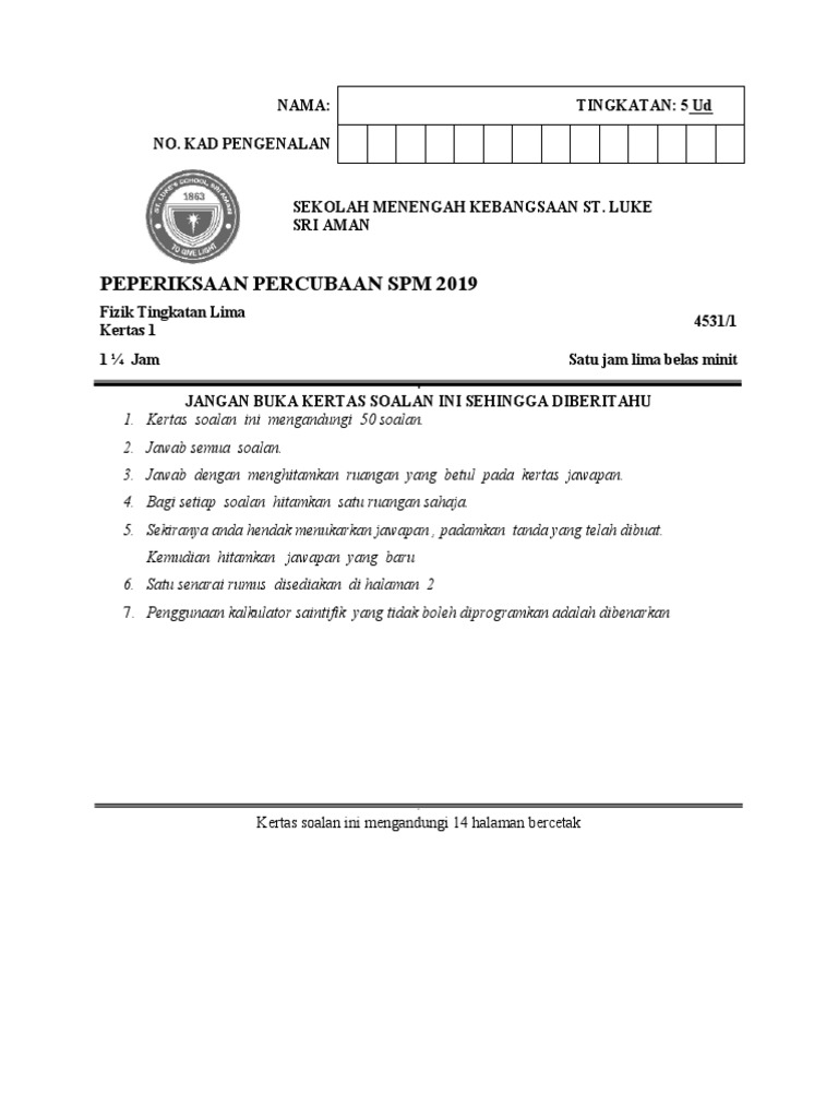 1 Fizik K2 Skema Trial Spm Smk St Luke Sri Aman 2019