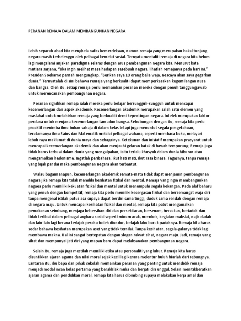 Doc Fokus Karangan 1 Peranan Remaja Beh Mh Academia Edu