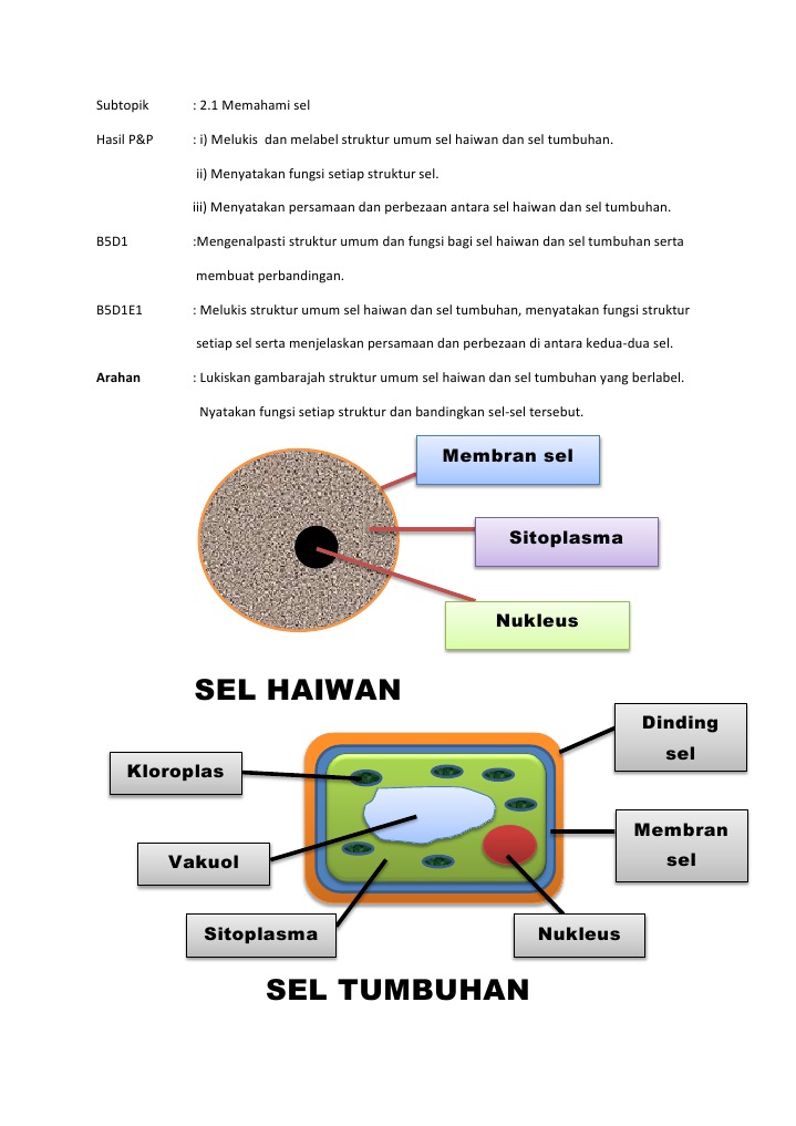 Struktur Sel Haiwan Dan Sel Tumbuhan Serta Fungsi Lessons Tes Teach