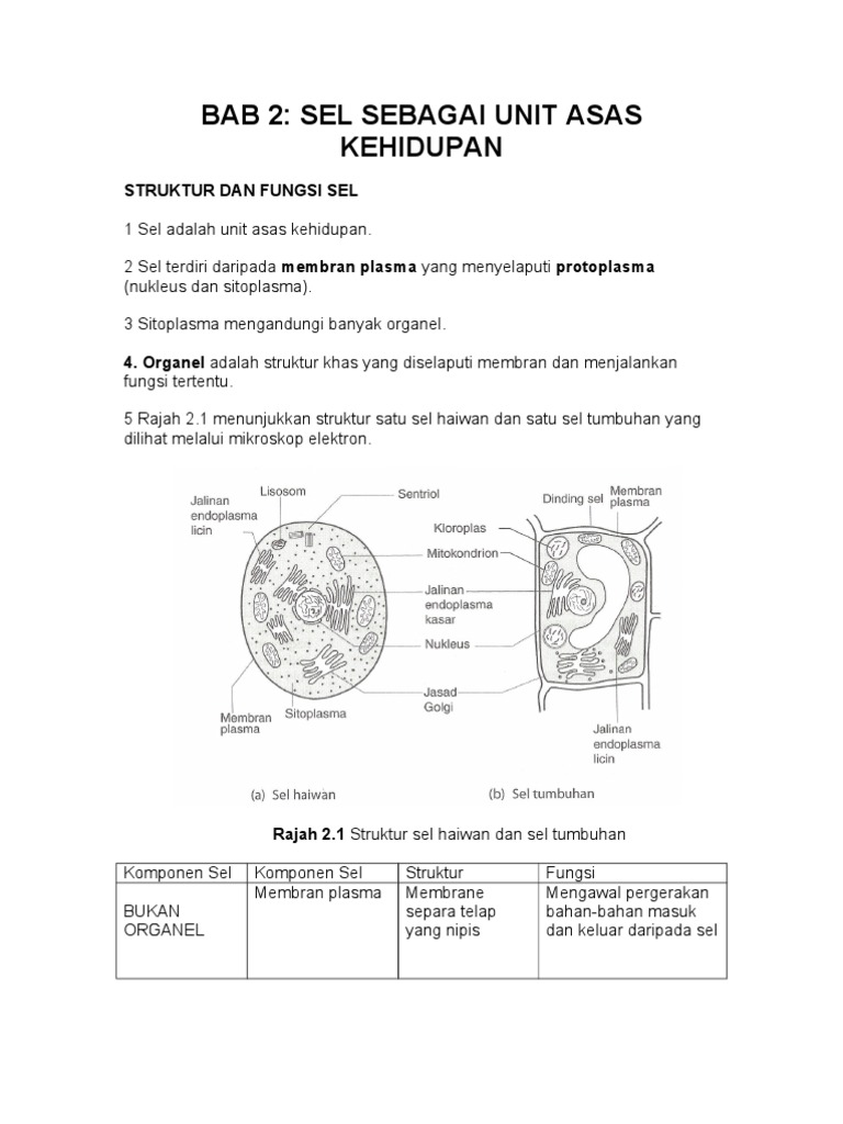 Bab 2 Sel Sebagai Unit Asas Hidupan Smk Tat Beng 34800 Haiwan Persamaan Sel Tumbuhan Ada Protoplasma Pdf Document