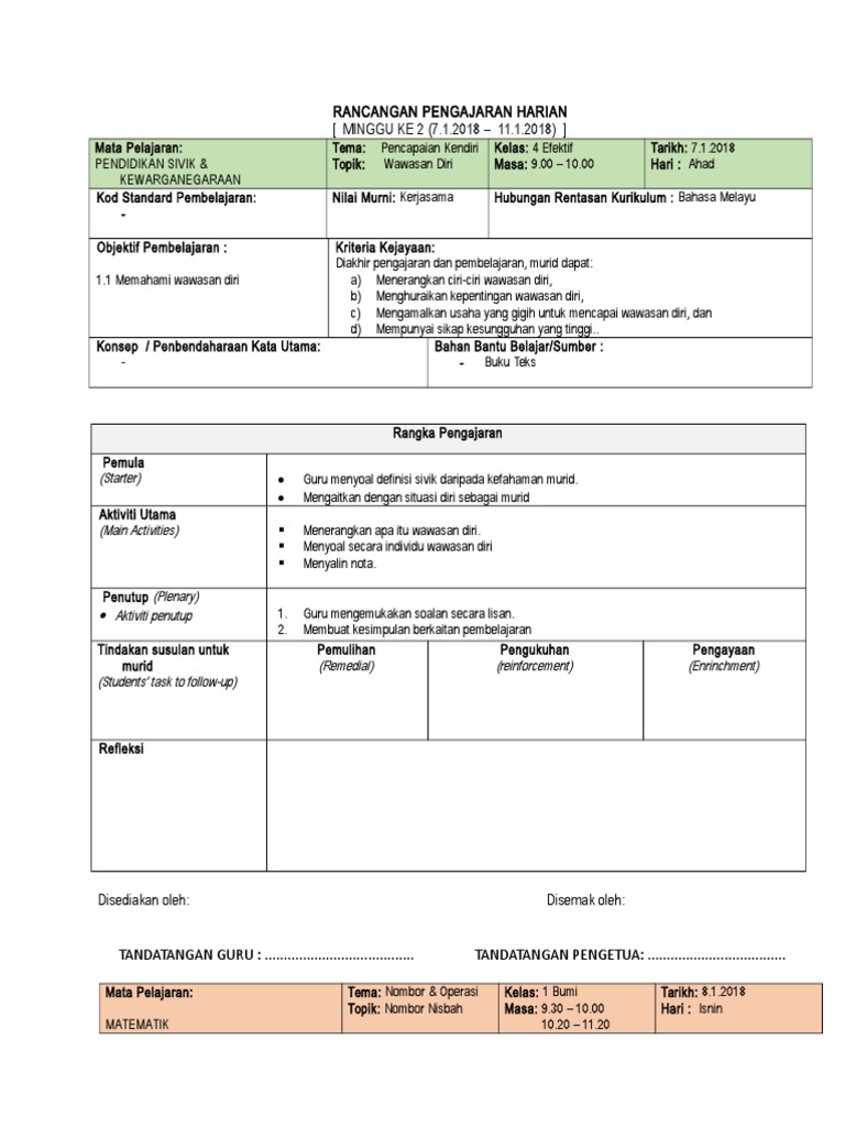Templat Rancangan Pengajaran Harian Rph Pembelajaran Abad Ke 21 Pak 21