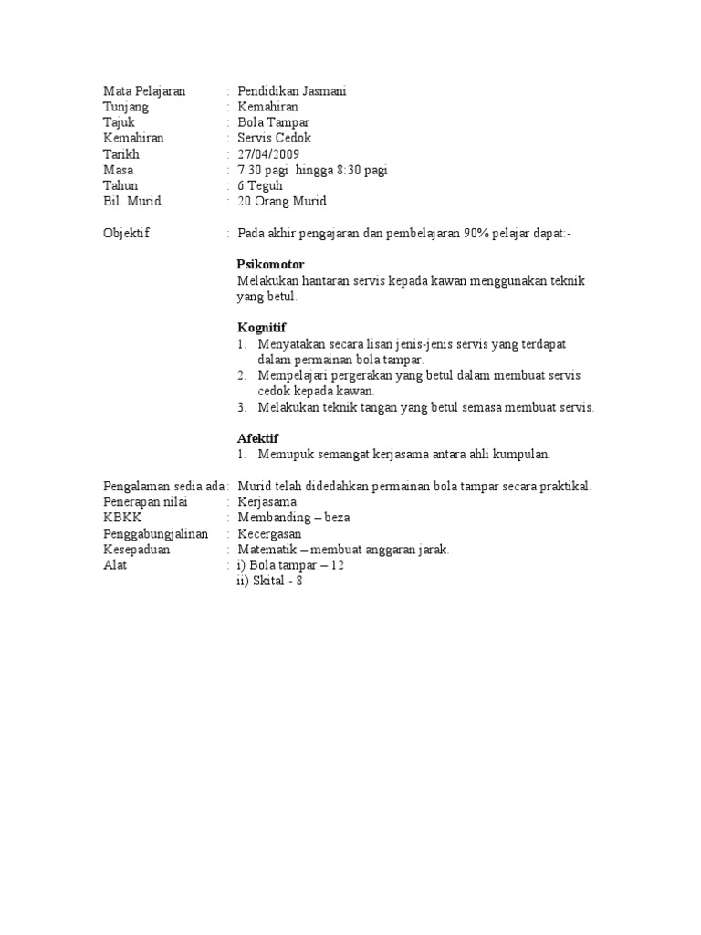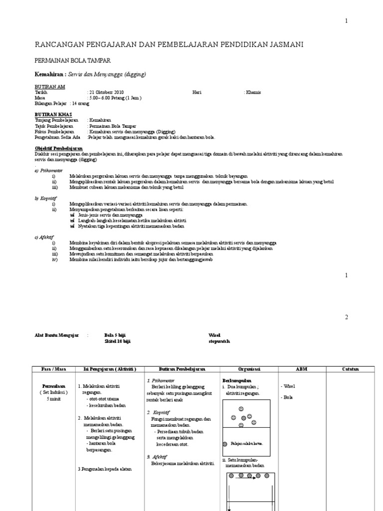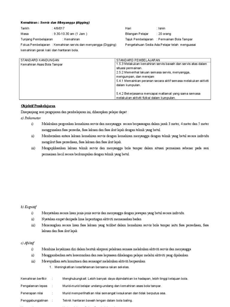 Rph Bola Tampar Kemahiran Servis Bawah Lengan Doc Document