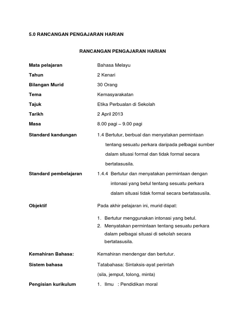 Rph Kssr Bm Kemahiran Mendengar Dan Bertutur