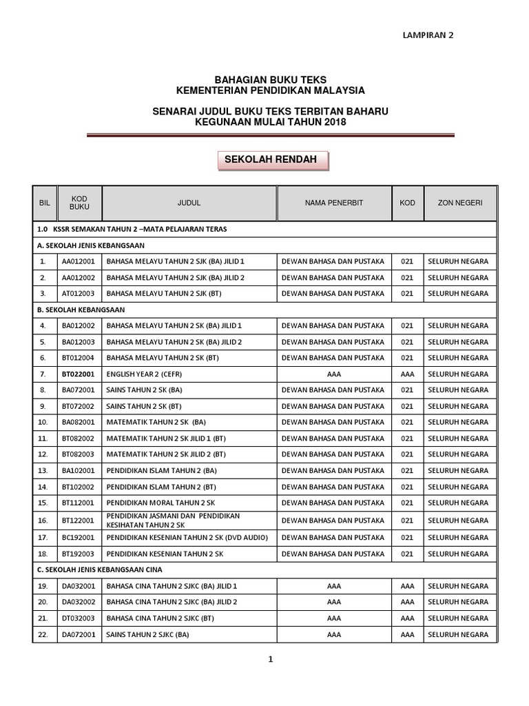 Senarai Judul Buku Btb Dan Ce Bagi Kegunaan Tahun 2018