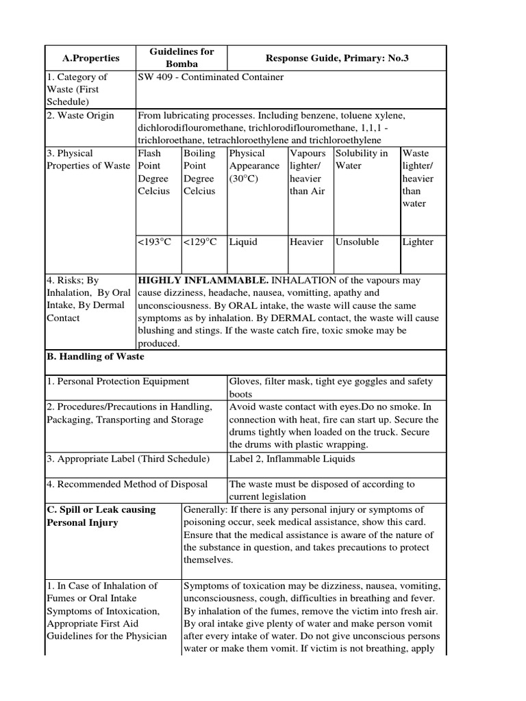 Seventh Schedule Waste Card Sw 409 Toxicity Vomiting