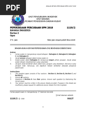 Soalan Percubaan Spm 2018 Bahasa Inggeris Sarawak