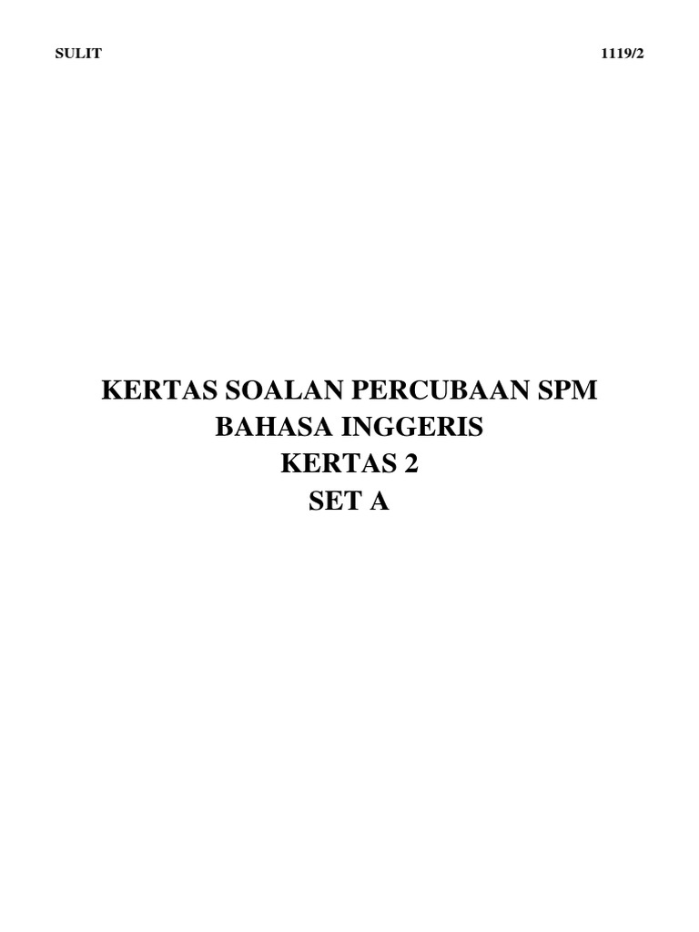 Koleksi Soalan Percubaan Bahasa Inggeris Spm 2019 2018