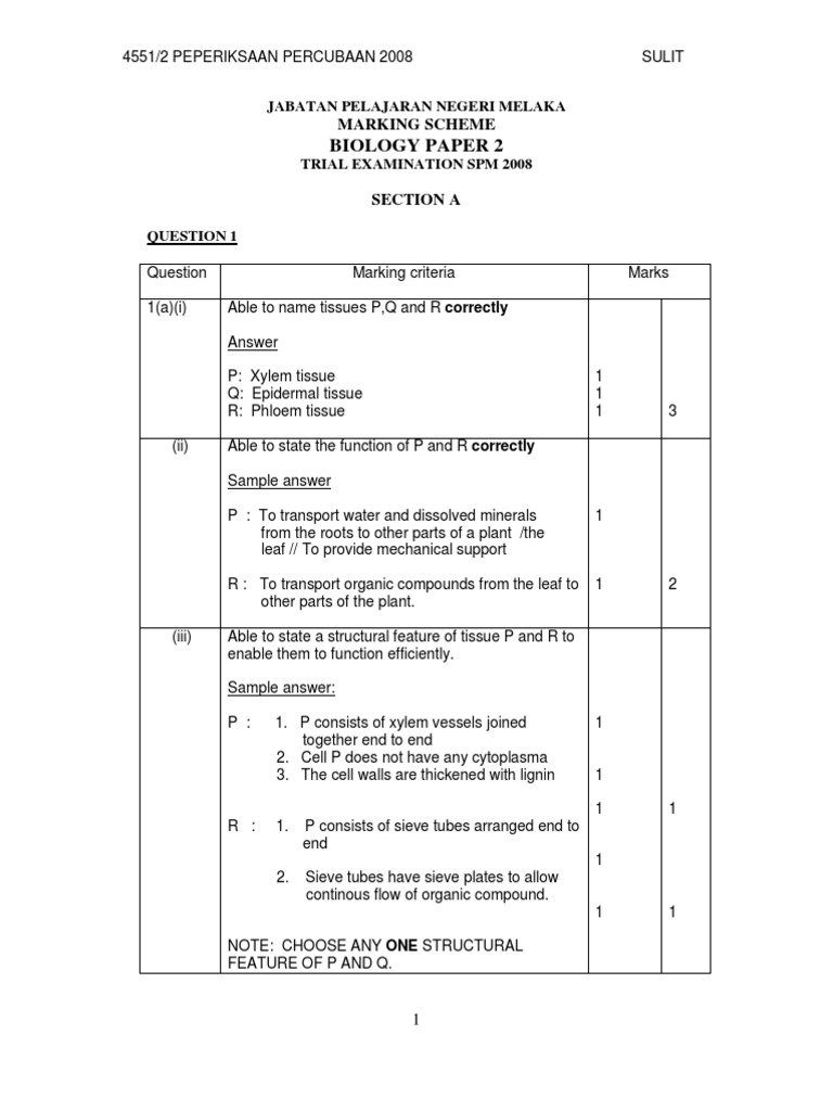 Melaka Marking Scheme Biology Paper 2 3 Cardiovascular Diseases Heart