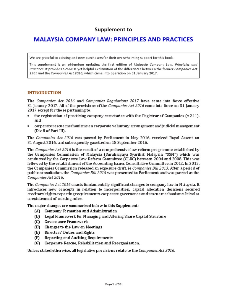 Pdf Highlights Of The Companies Act 2016 Hong Onn Academia Edu