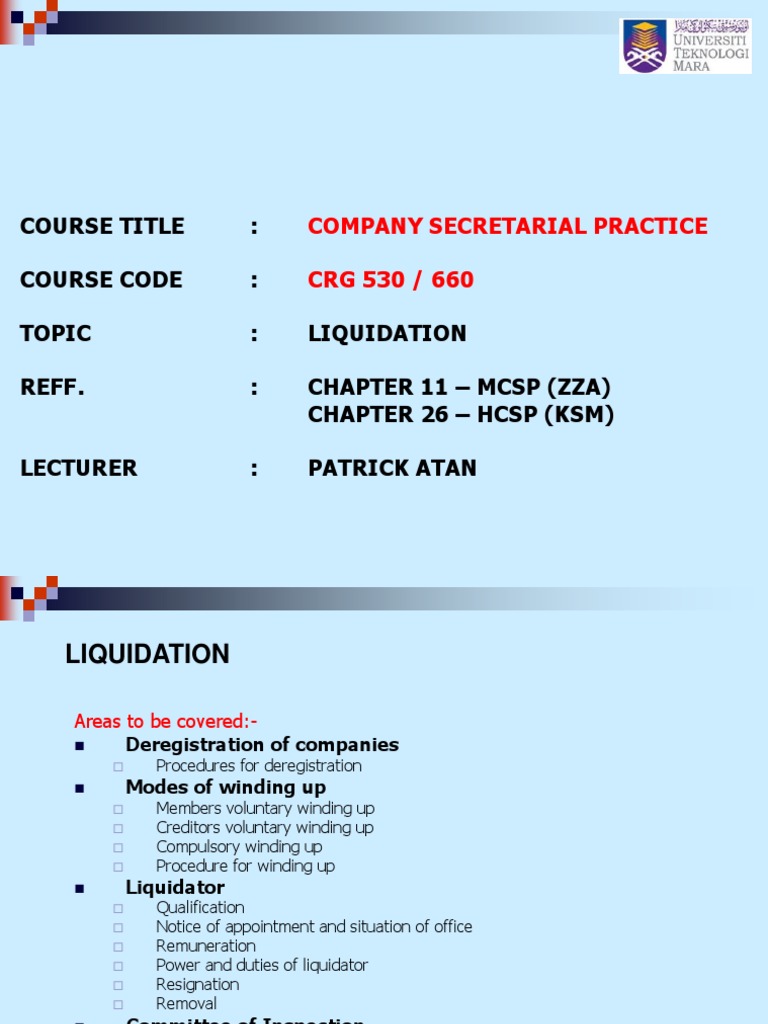 Topic 13 N 14 Winding Up Company Law Glup 3173 Uum Studocu